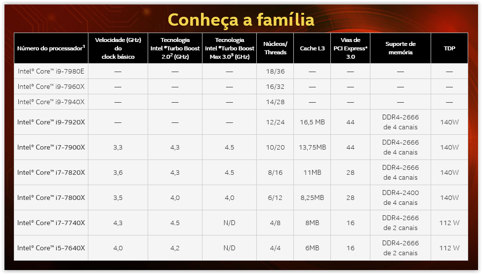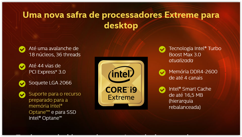 Agora no início do segundo semestre de 2017 foi lançada pela Intel a nova família de processadores Intel Core X. Esta nova linha trabalha sobre socket 2066; substituta do socket 2011 para desktop. O novo chipset é o X299; substituto do chipset Intel X99.