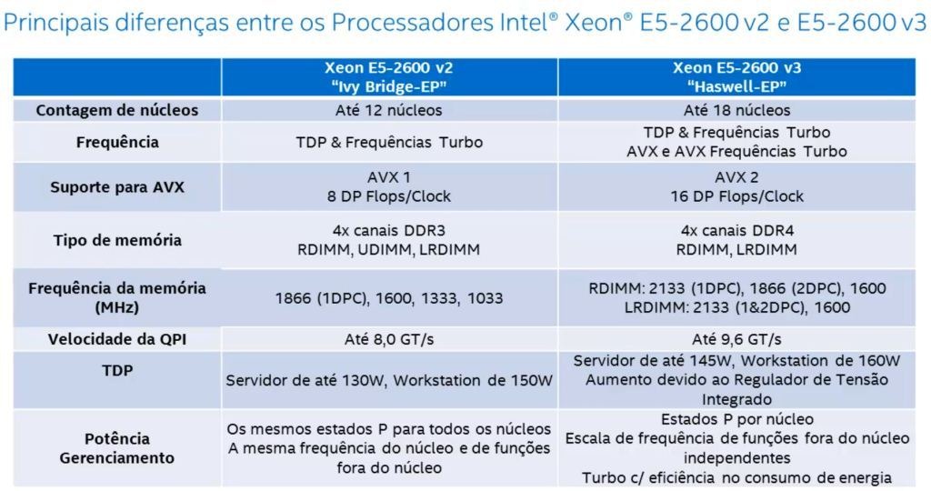 Abaixo um comparativo com a geração antecessora Xeon E5-2600 V2 :